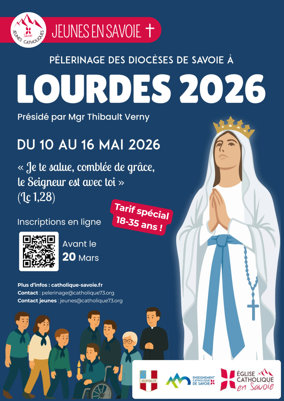 Pour en savoir plus pour partir à Lourdes en tant que pèlerin de + de 35 ans, prêtre, jeune d’un établissement de l’enseignement catholique de Savoie, hospitalier ou pèlerin accompagné : Rendez-vous sur la page des diocèses de Savoie.