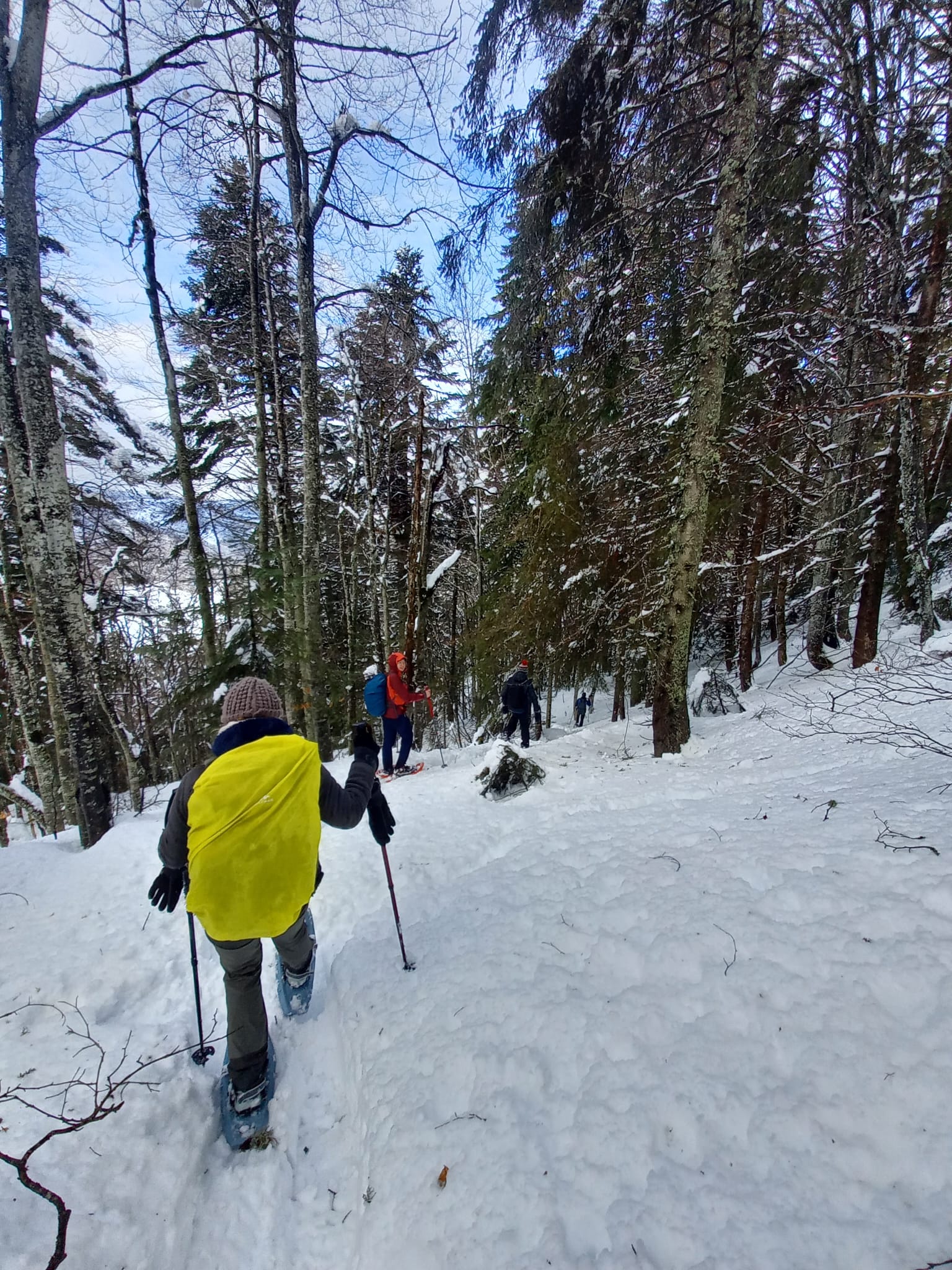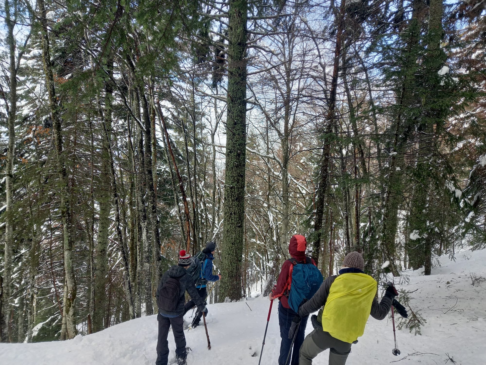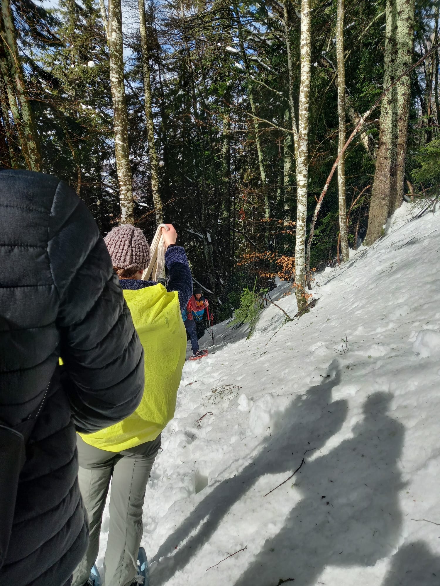 Nous avons commencé à marcher vers 9h. Nous avons serpenté les bois enneigés jusqu’au chalet.